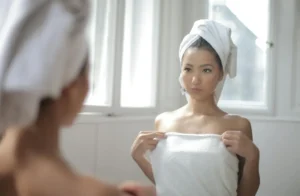 La mujer regresó a su habitación, cerró la puerta, tomó la toalla y se envolvió con ella una vez más. De vuelta arriba, su marido preguntó por el visitante, felizmente ajeno a la espontánea mirada de despreocupación.