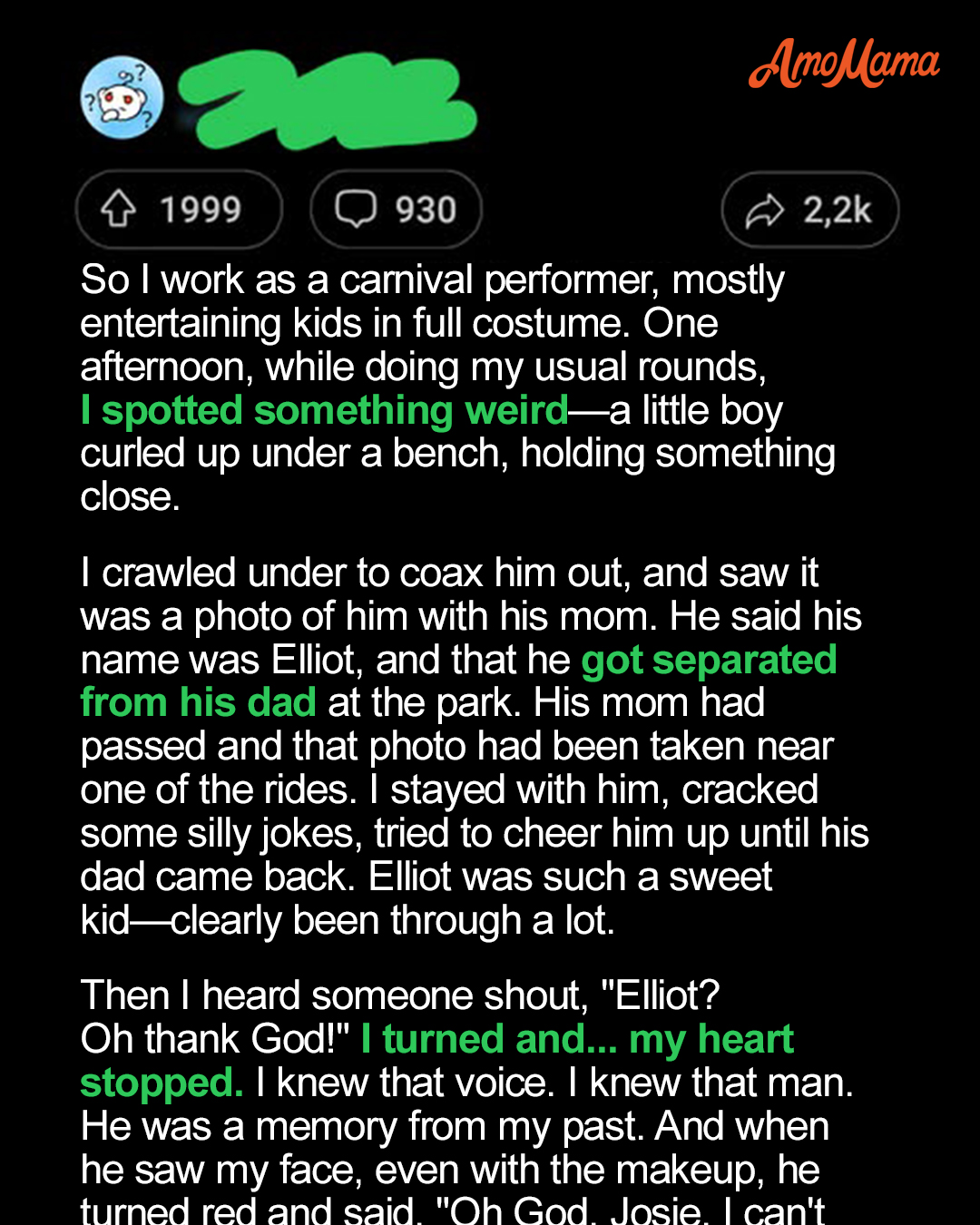 When carnival performer Josie spots a distressed boy hiding at the fair, she draws on her skills to comfort him. But helping this lost child stirs up memories of her late sister and forces her to confront her own grief. Then his father arrives, and she’s left speechless as she recognizes him.