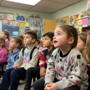 Ted dio una ronda de aplausos calurosos. Dijo: “Entonces, Marvin, ¿te gustaría contarnos un poco sobre ti?” Marvin negó con la cabeza. Ted sonrió. Metió la mano en el cajón de su escritorio, sacó una pequeña bola de color. La levantó y sonrió a la clase. Comentó: “Está bien, todos, formemos un círculo”. Los niños, emocionados, apartaron sus escritorios y se organizaron en un círculo suelto en el suelo. Ted dijo: “Vamos a jugar a un juego”. Por favor, cuéntame una cosa sobre ti cuando atrapes la pelota. Después, dásela a otra persona”. Ted observó a Marvin sentado tranquilamente en el borde mientras la pelota comenzaba a viajar. Se tomó un momento para decir: “Disfruto de los dinosaurios”, cuando la pelota cayó en sus manos.