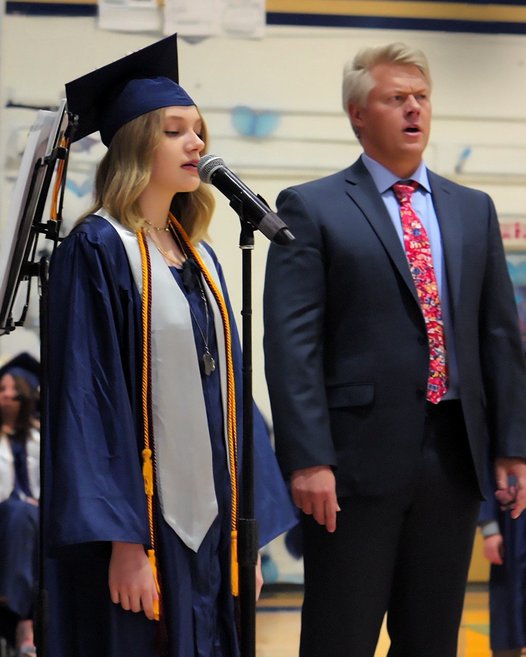 We arrived early, soaking in the excited buzz of families clustered around balloons and cameras. The gym gleamed in blue and gold, and as each student’s name rang out, we cheered until our throats were hoarse. Then came the father-daughter dance, a cherished tradition in our town. Lana spotted us, grinned, and waved, her eyes lighting up the room.