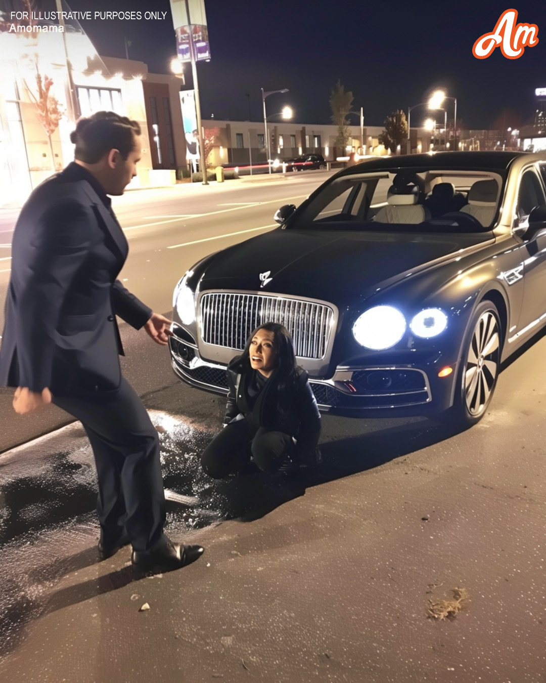 Me congelé, insegura de si retroceder o correr hacia adelante. En un instante, decidí saltar hacia adelante, aterrizando justo en el agua fangosa. El coche chirrió al detenerse a centímetros de mí, pero yo estaba empapada, sentada en el frío y sucio agua sobre el pavimento. El conductor, un hombre en un traje caro, abrió su puerta y salió furioso, su rostro torcido por la irritación. “¿Eres ciega? ¡Podrías haber dañado mi coche!” gritó, su voz impregnada de ira y molestia.