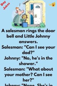 Meanwhile, in another story, a salesman knocked on a door, greeted by little Johnny.